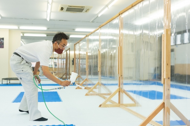 練習場の床には、転倒した際の怪我を軽減するクッション性のあるフロアマットを敷き詰めました。今まで以上に伸び伸びと稽古をすることができます。